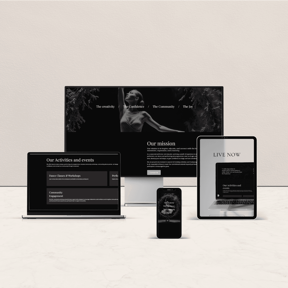 The old website was built on an outdated platform with limited design options and didn’t work well on mobile. It was hard to navigate, which made it tricky for parents and students to find class details, timetables and the gallery.