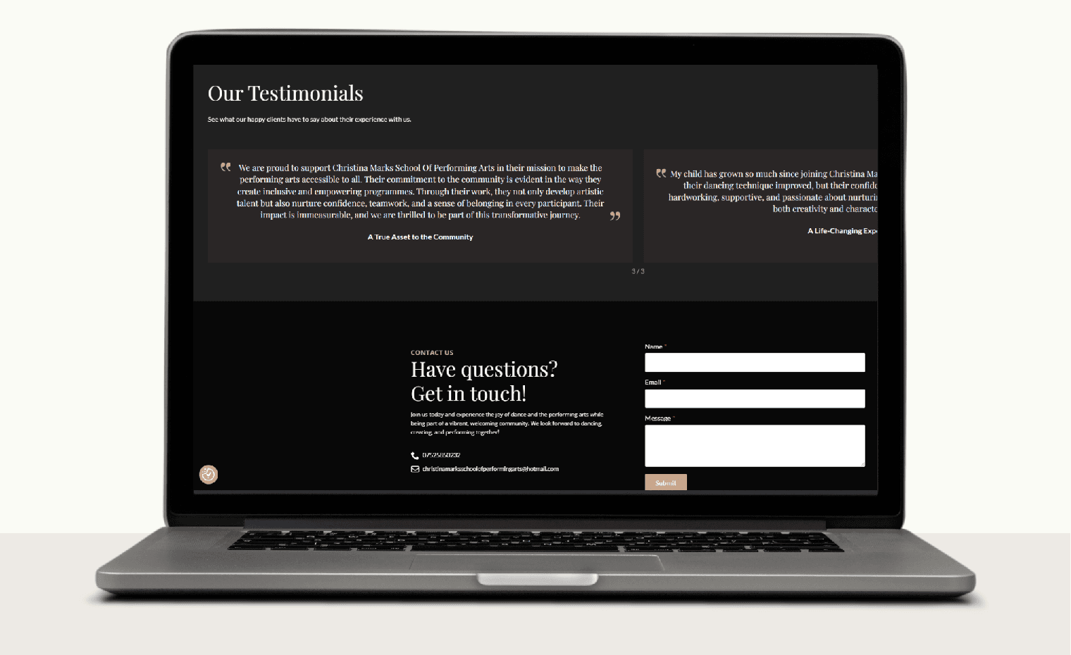 The new website truly reflects the heart of Christina Marks School of Performing Arts. It's vibrant, professional and focused on the community.